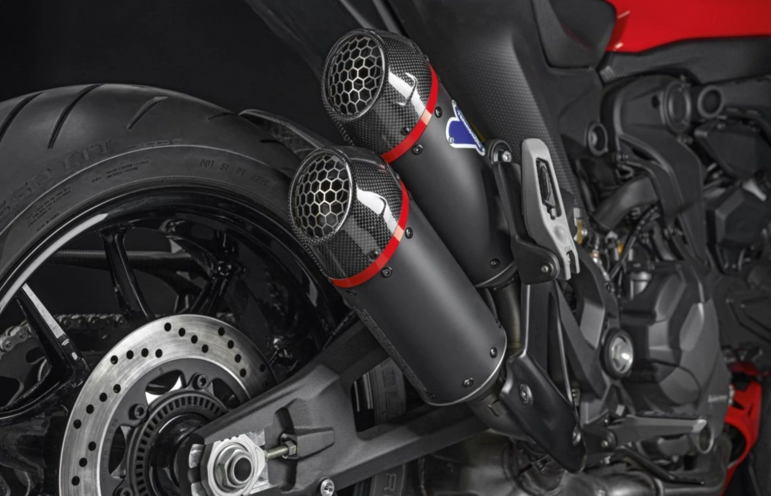 Racestijl, stedelijk karakter. De lichtheid van de koolstofvezel en het ontwerp van dit accessoire brengen het sportieve karakter van de monster naar voren en versterken de jonge frisse look, typisch voor de nakedbike. Vervaardigd in samenwerking met Termignoni, is het vanaf het eerste gezicht ontworpen voor echte opwinding.