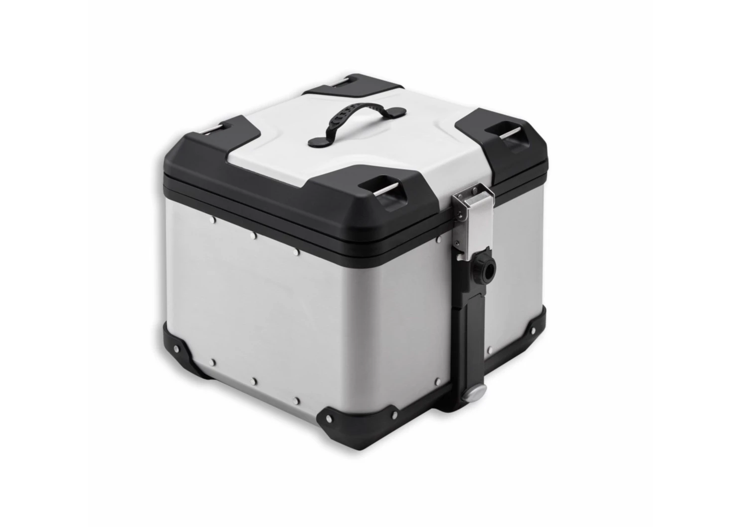 Een sterk accessoire dat de perfecte combinatie van functionaliteit en design vertegenwoordigt. Gemaakt van aluminium, behoudt het zijn natuurlijke kleur na verloop van tijd dankzij hoogwaardige anodisatie. De inhoud van 41 liter biedt maximaal comfort, terwijl het verfijnde ontwerp hem ook een stijlvol element maakt. De ideale metgezel voor elk avontuur op twee wielen.