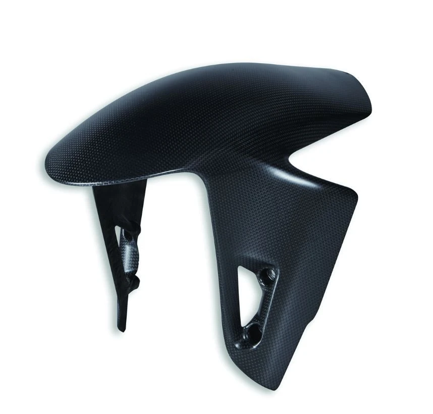 Het Ducati voorspatbord is gemaakt van Carbon. Dit exotische materiaal geeft deze superbike een nóg sportiever tintje.